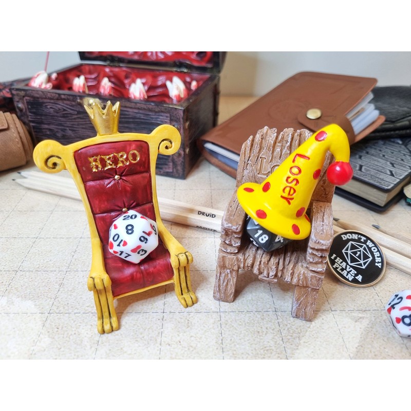 - 🐉 HERO'S THRONE AND CHAIR OF PUNISHMENT: Award your die that has been a Hero, and has saved you or filled your game with Glory on a King's Throne! Does your die only make bad rolls? Does it always make bad rolls? Punish him in the Chair of Shame and let everyone see it! Then he will learn!