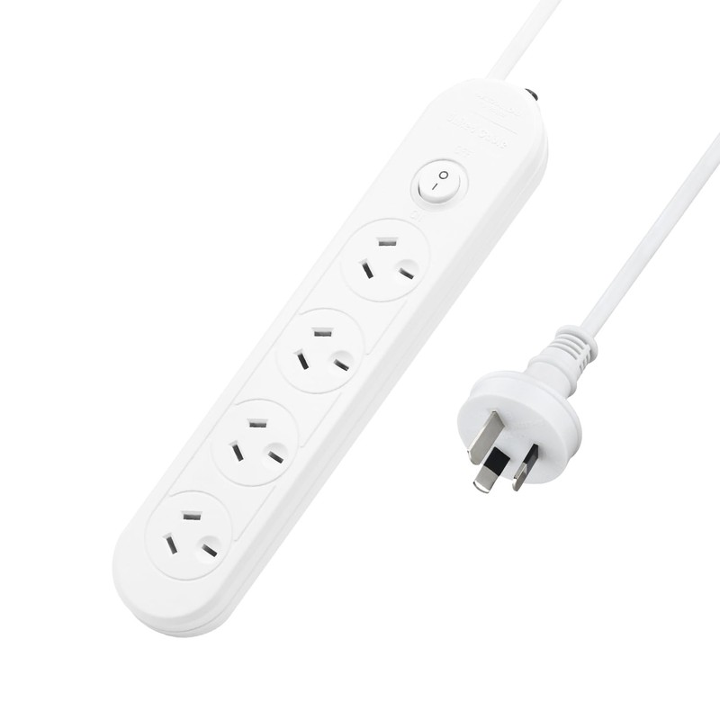 Power Board Surge Protection White 10A 240V 1M 4 Outlet Master Switch SAA