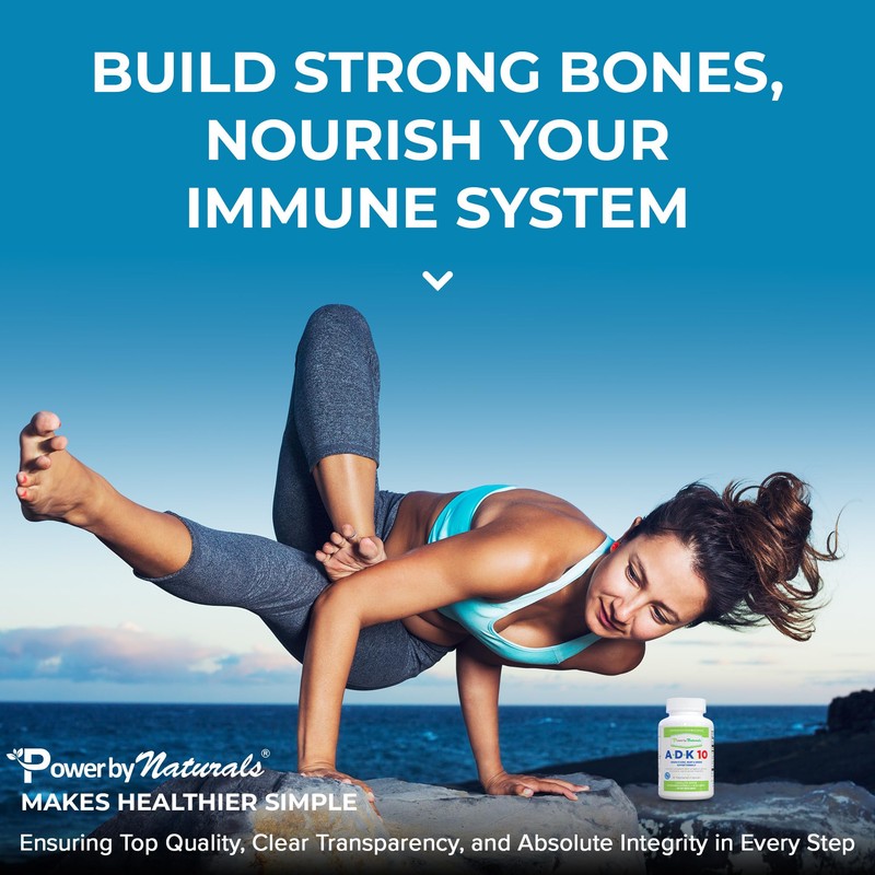 Power By Naturals ADK Vitamin Supplement – ADK 10 High Potency with Vitamins A, D3 10,000 IU & K2 MK7 for Superior Heart, Immune & Bone Health Support – 90 Capsules, 1 Pack (3-Month Supply)
