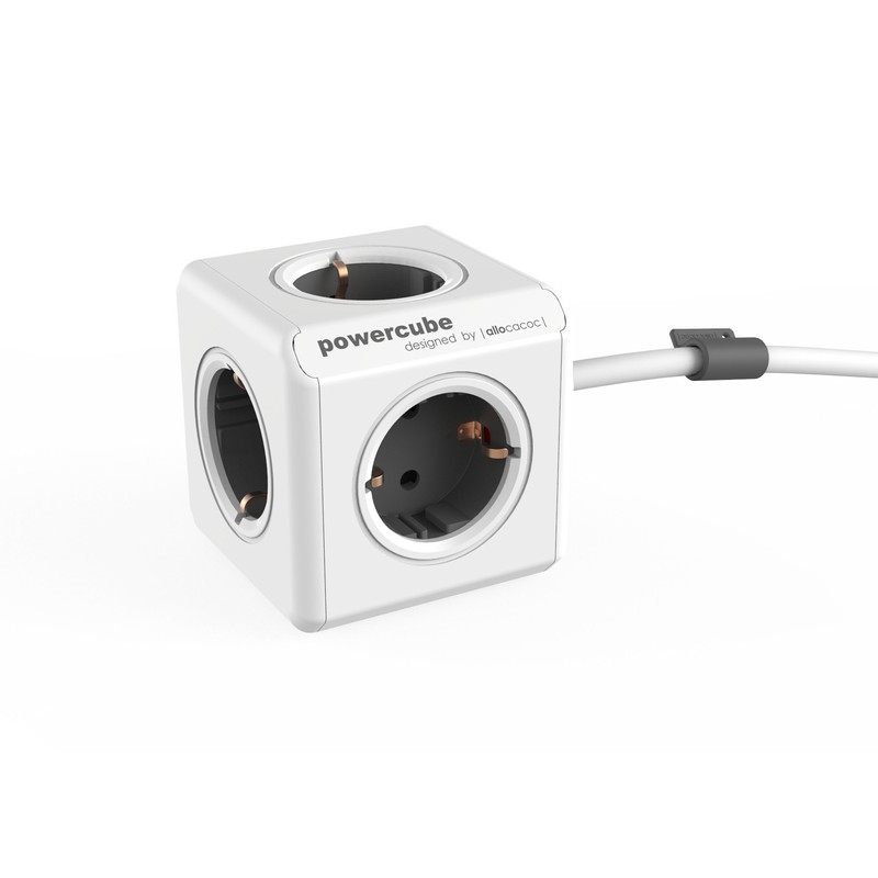 Power Cube Extended EU Grey, Socket Cube with 5 Sockets, Desk Mounting Kit and 1.5 m Cable, 230 V, 10 A Max.