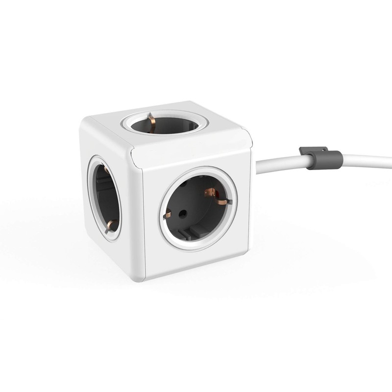 Power Cube Extended, Socket Cube with 5 Sockets, Desk Mounting Kit and 1.5 m Cable, Grey/White