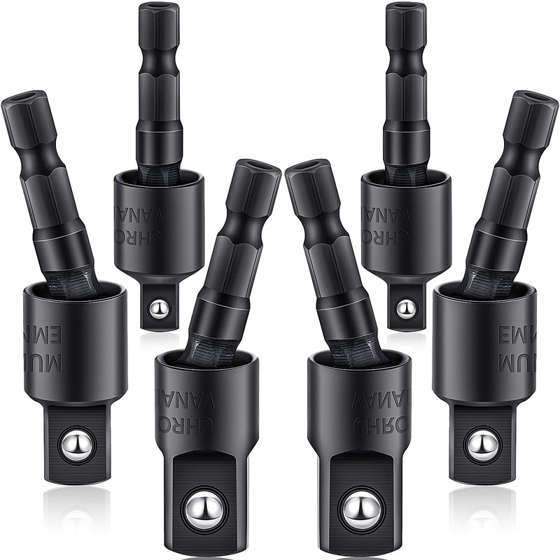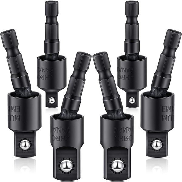 Features: Wide usage: Designed for reaching narrow spaces where ordinary straight tools cannot enter, these rotatable socket adapters can be applied to electric screwdriver, pneumatic drill, manual screwdriver and other installations. Specifications: Size: 1/ 4 inch, 3/ 8 inch and 1/ 2 inch Color: black Material: chrome vanadium steel Package includes: 6 x Hex socket adapters Warm notes: Please allow a little error on the size due to manual measurement. The color might exist slight difference due to different displays. Please read the size instruction carefully before purchasing.