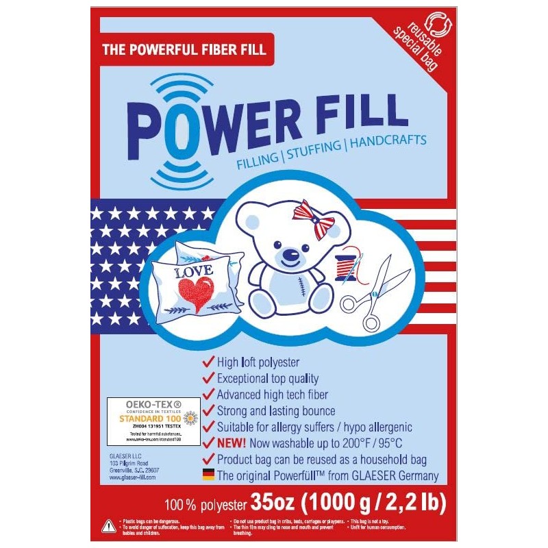 Power Fill – Premium Fiber Fill – 35 Ounce | Oeko TEX 100 Standard – Washable up to 200 °F/95 °C | Non-Allergenic | Filling Material for Dolls & Stuffed Toys | (1)
