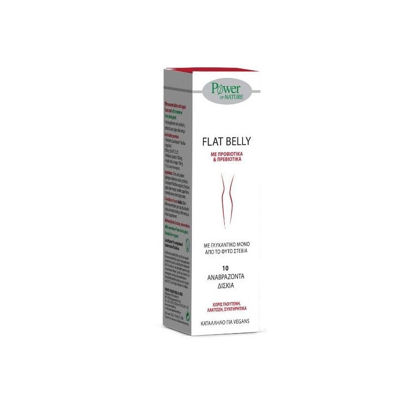 The Power Health Flat Belly is a dietary supplement for a flat belly, containing a combination of probiotics and prebiotics with apple cider vinegar.