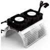 Heat Sink features a lightweight aluminum construction with a dual cooling fan design. The heat sink is compatible with 1/8 scale motors around 40.8mm diameter and 57.9mm in length and includes two 30x30x10mm high-speed fans that peak around 18,000RPM @6v
