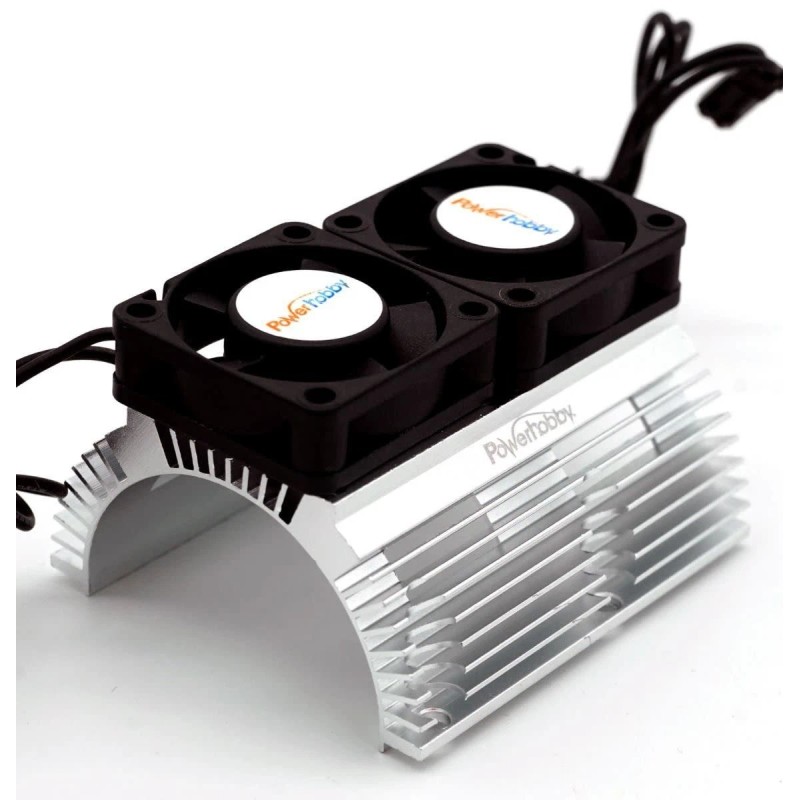 Powerhobby Heat Sink w Twin Turbo High Speed Cooling Fans 1/8 Motors-Silver