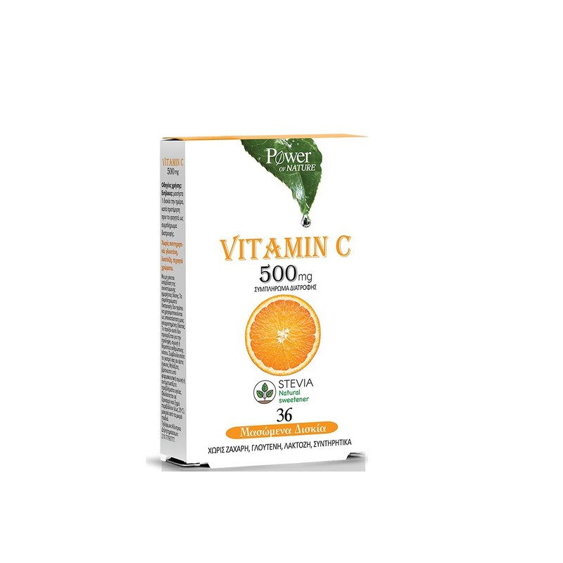 Power Of Nature Vitamin C with Stevia 500mg, 36 Chewable Tabs