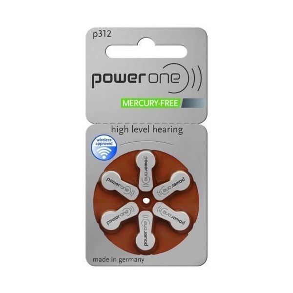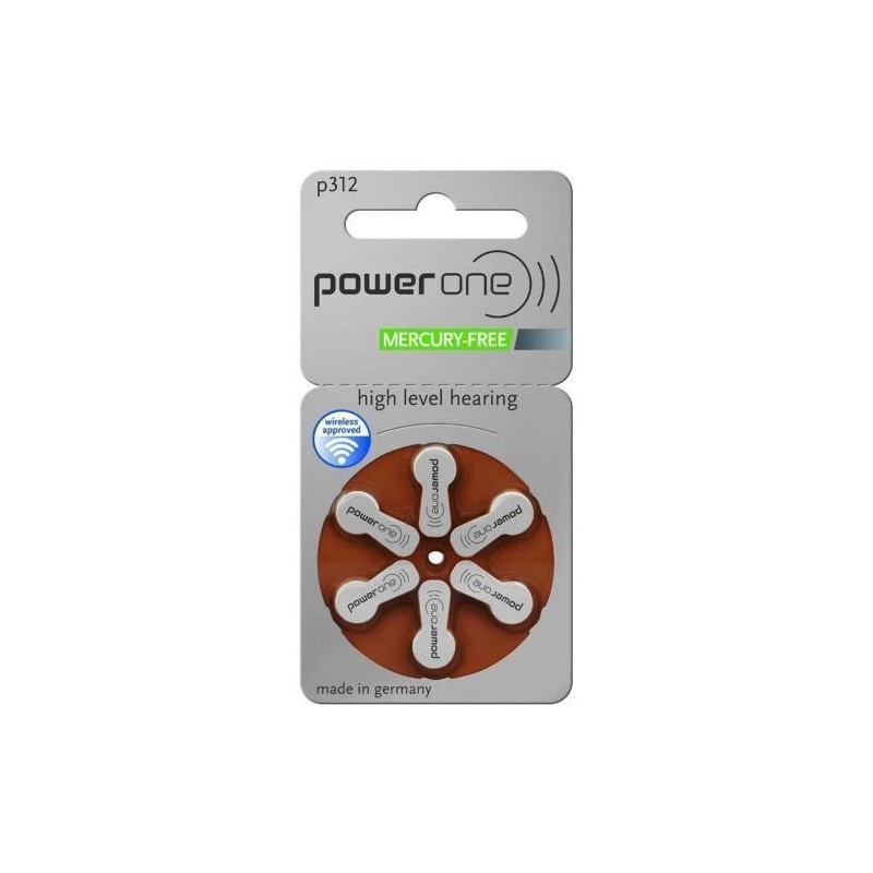 Power One Size P312/PR41 High-Level Hearing Aid Batteries Zinc Air 6 Piece Pack -005.