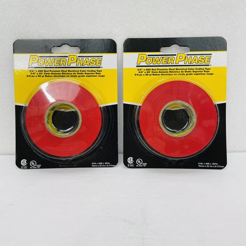 Power Phase (2 Rolls) Power Phase Red Electrical Tape 3/4”x66’ Vinyl Color Coding