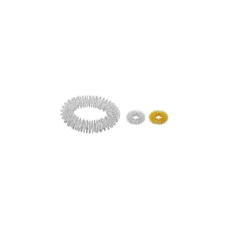 Package Content: 1 x ARM acupressure ring, 1 x Finger Ring Silver Small: 1 x Finger Massage Ring Gold Small