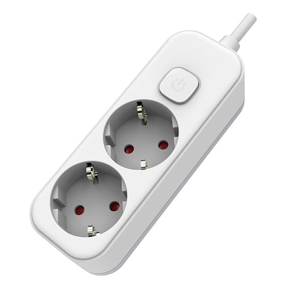 Power Strip 2 Sockets with Switch, 1.5 m Cable, White, Ideal for Connecting Multiple Electrical Devices.