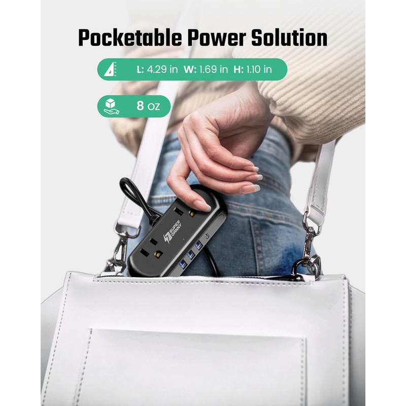 - 【Compact & Portable】SUPERDANNY travel power board has a mini size of 4.29 x 1.69 x 1.10 inches (weighs 8 oz), small enough to take to work or school with enough outlets to power up your electrical devices.