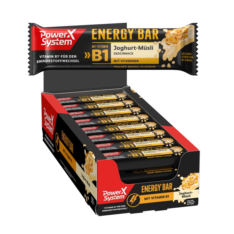 The Power System Energy yoghurt cereal is our protein bar with the extra portion of carbohydrates. Thanks to the added vitamin B1, the bar supports your energy metabolism. Your energy boost after endurance training, when biking or during your next hike.