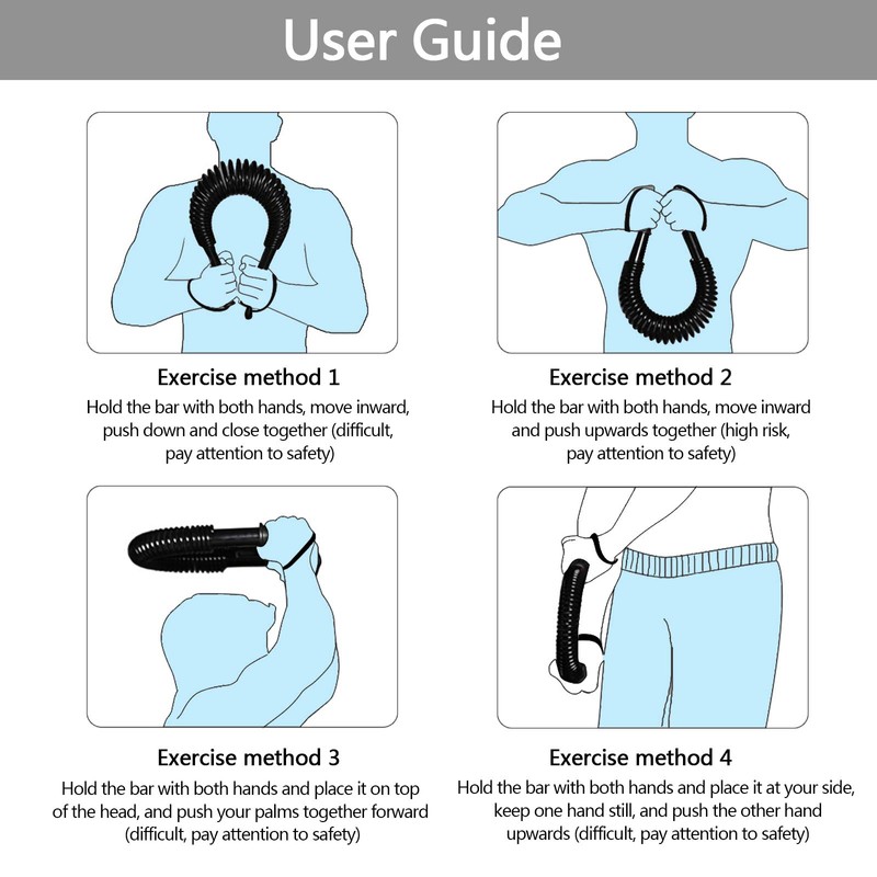 **Specifications** Total length included handle 24" Spring length 11" (27cm) Weight: 2.19lbs(44lbs load), 2.47lbs(66lbs load), 3.12lbs(88lbs load) Maximum Load: 20kg/44lbs, 30kg/66lbs, 40kg/88lbs (optional) **Package included:** 1 x Power Twister **Note** There may be some measuring error because of the manual measurement, hope your tolerance. ** Please note any exercise should be according to one's strength.**