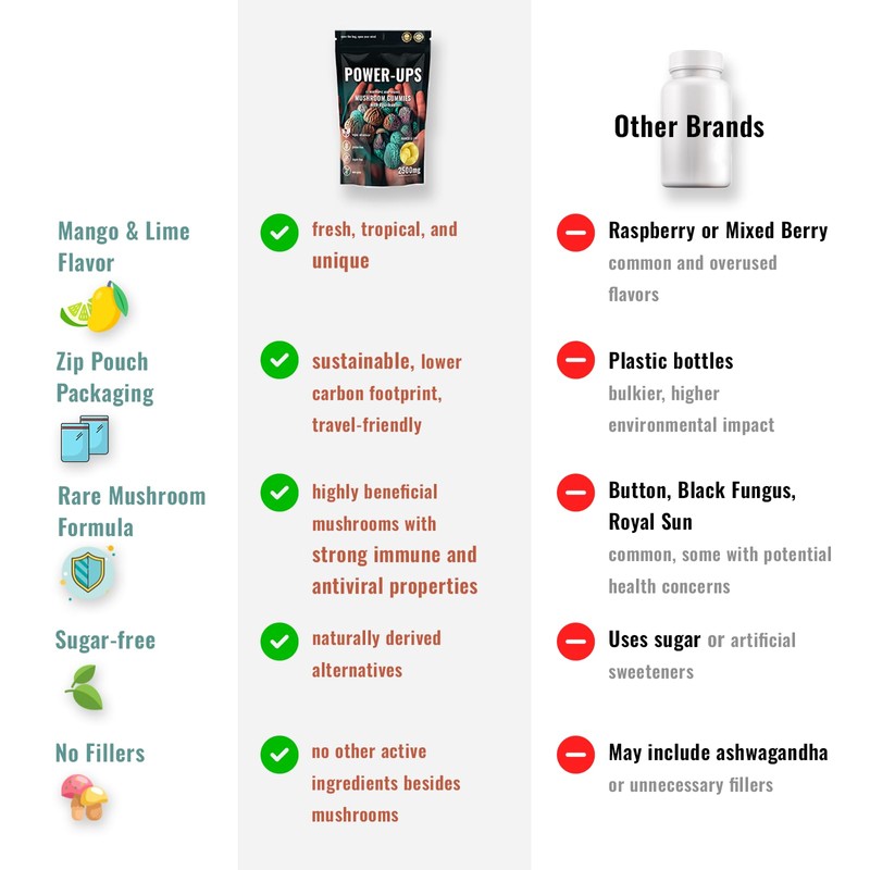 - UNIQUE, ANCIENT MUSHROOMS IN EVERY GUMMY – Our gummies feature Agarikon and Mesima, two mushrooms that are not commonly found in most other gummy supplement brands. These distinctive mushrooms are a rare addition to your wellness routine, providing a unique alternative to traditional mushroom supplements.