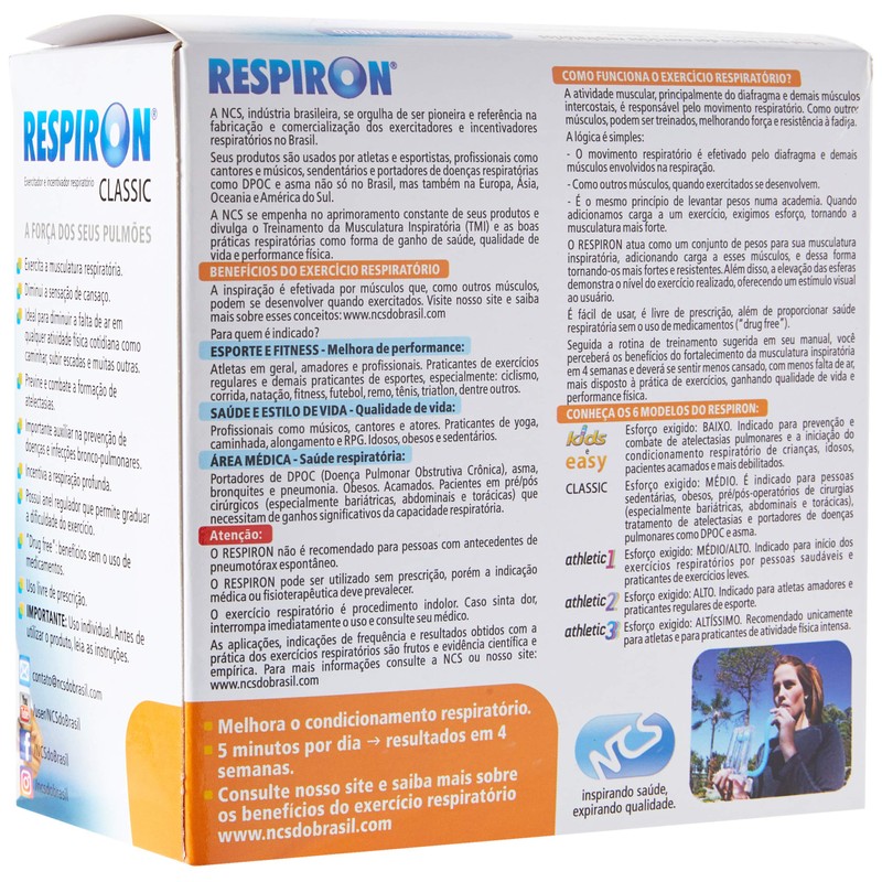 Respiron is a flow based lung trainer meant to improve breathing and help restore normal breathing. The Respiron is fully adjustable, so the level of difficulty can be modified, depending on your breathing strength. Respiron exercises and strengthens the lung muscles by encouraging slow, deep, controlled breathing. It can also be used to restore and maintain lung function.