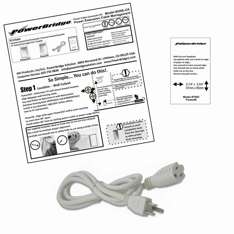 PowerBridge Solutions ONE-CK-26 in-Wall Cable Management for Wall-Mount TVs, 26' PowerConnect Cable