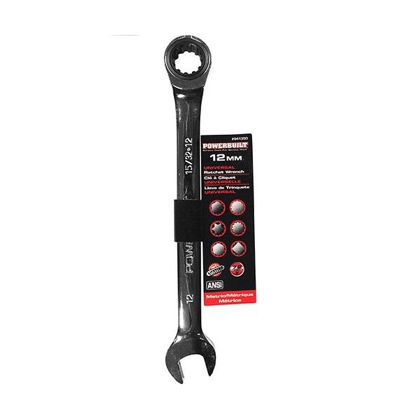 Powerbuilt 12MM Universal Ratcheting Combination Wrench Chrome Finish Also Fits 15/32"