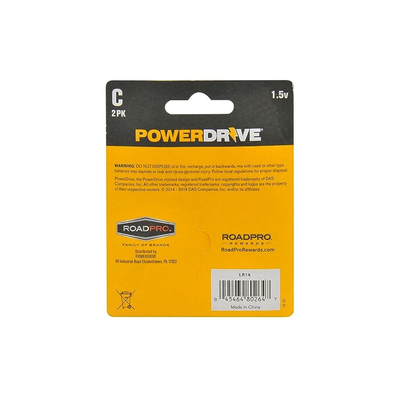 PowerDrive LR14 Alkaline C Battery - 2 per Pack
