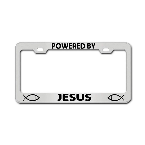 Powered by Jesus Chrome Tag Holder License Plate Frame Auto