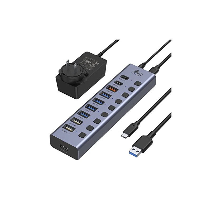 Powered USB 3.1Hub, 10-Port USB Data Hub Splitter with 3 USB 3.1(10Gbps), 4 USB 3.0, 3 Charging Ports, Individual ON/Off Switches and 12V/5A DC Power Adapter, USB C Hub for Laptops and Computer