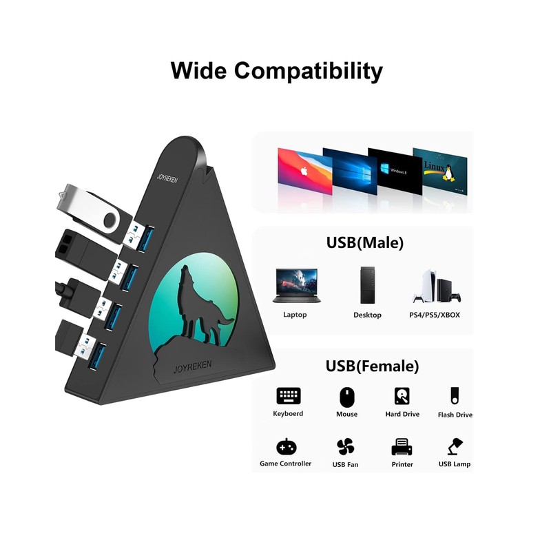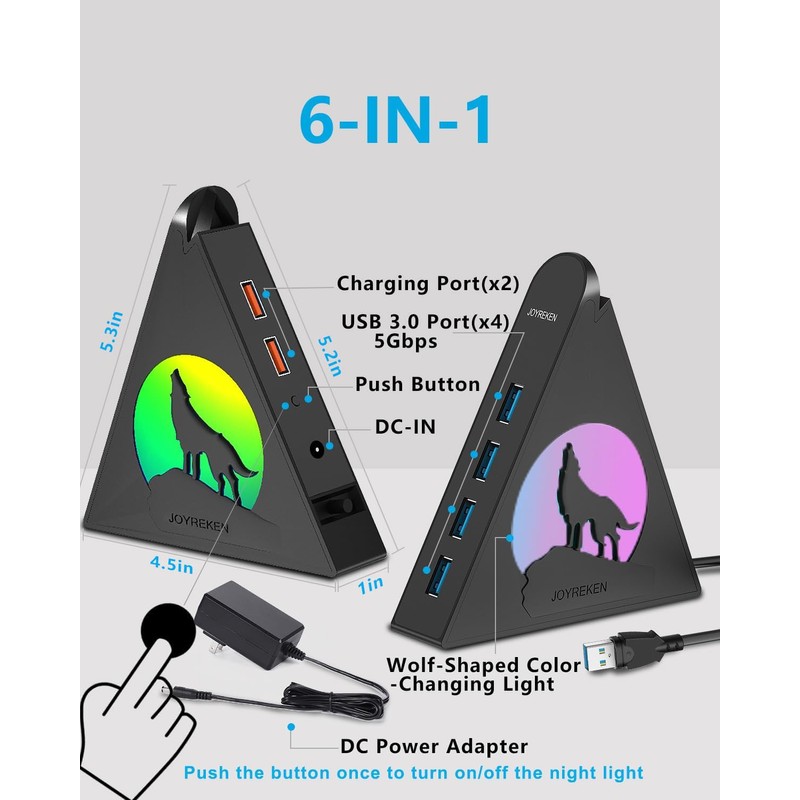 - 【What You Get】- JoyReken HowlingHUB 4-Port USB 3.0 Data & Charging Hub, 12V / 4A DC power adapter, user manual, our worry-free 12-month warranty, and friendly customer service.