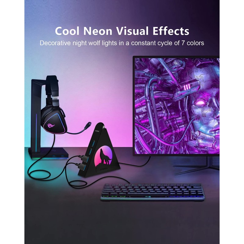 - 【Uncompromised Visual】- The unique Howling Wolf design on the side and the pyramid design at the top provides an aesthetically pleasing profile and boundary-breaking visuals. Decorative wolf-shaped night light can continuously cycle through 7 colors to provides soft light and it manages to add awesome neon excitement to any desk space whether at home or in the workplace, allowing you to compliment your home or office decor.