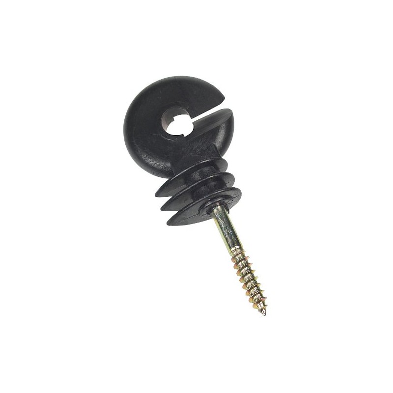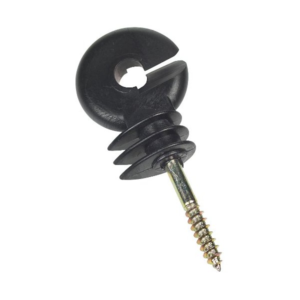POWERIELDS Screw In Wood Post Insulator. Wood post insulator for rope and wire with the screw molded into thick polyethylene body. 25 per bag.