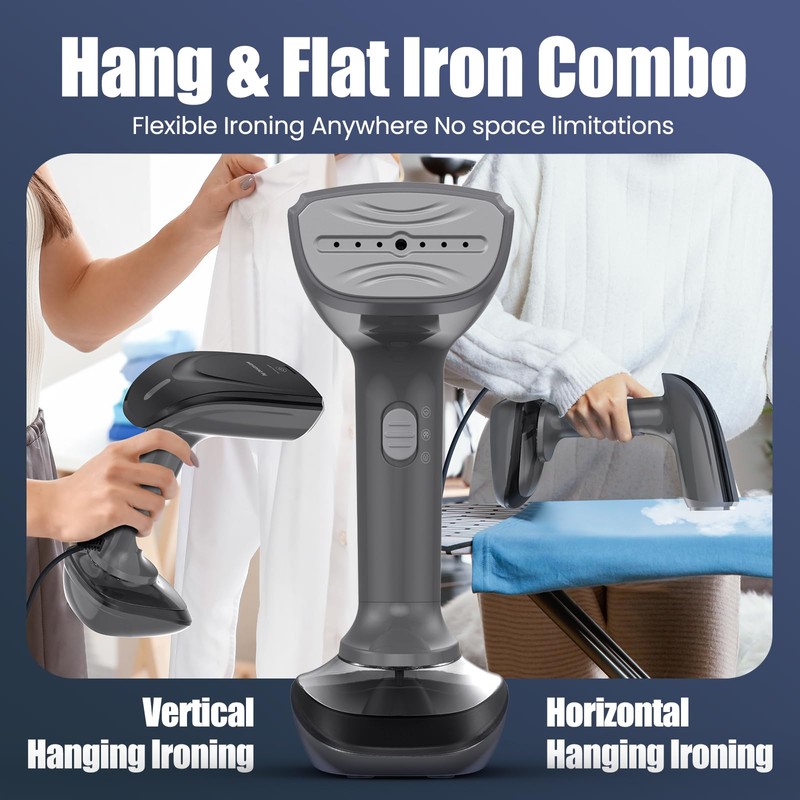 - Versatile and convenient - With a 300ml detachable water tank, this iron steamer can be used for both dry and wet ironing. Its 360-degree orientation design ensures no water leakage during use.
