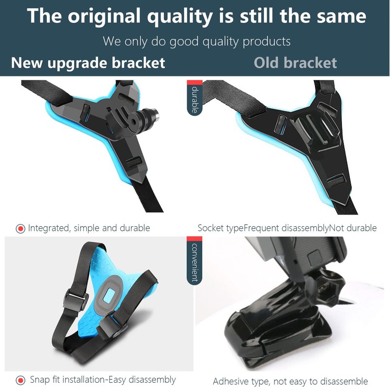- Upgraded Design:Improved Motorcycle Helmet Chin Strap Mount, a new double-head adapter has been added to facilitate extended and adjusted shooting angle