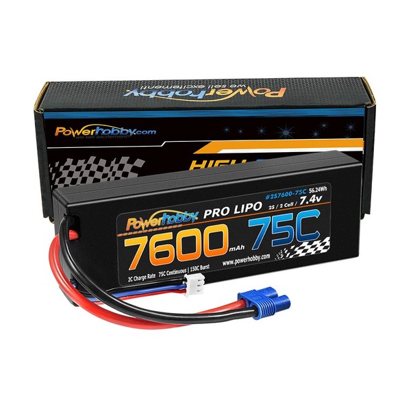 PowerHobby 2S 7.4V 7600mAh 75C Lipo Battery Pack w EC3 Plug Hard Case Fit : Ecx Vaterra ProBoat Proboat
