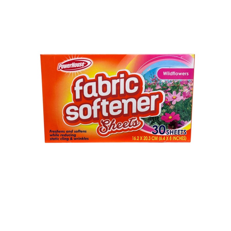 Bring the essence of a blooming field of wildflowers into your laundry routine with PowerHouse Fabric Softener Sheets. These dryer sheets help to freshen and soften your clothes while significantly reducing static cling and wrinkles. Perfect for everyday laundry, each sheet delivers a light and clean floral fragrance that lingers long after drying. The compact and easy-to-use box includes 30 sheets, ideal for home use or travel. This listing includes a value pack of 6 boxes — 180 sheets total — so you can enjoy freshness load after load.