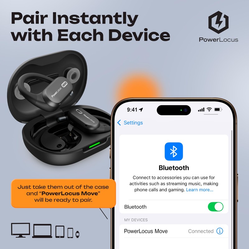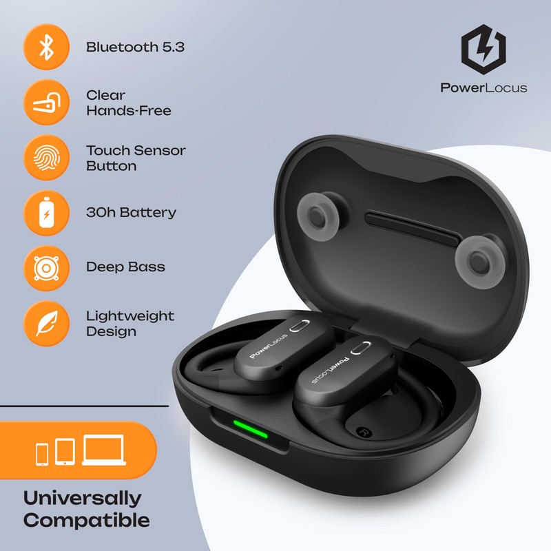 - [Open-Ear Headphones] – Join the revolutionary feeling that PowerLocus Move open ear earbuds provide. Enjoy true wireless sound and yet feel your surroundings with our aesthetically designed open ear headphones wireless which provide breathtaking listening and rich audio much better than the conventional bluetooth earbuds and bone conduction headphones.