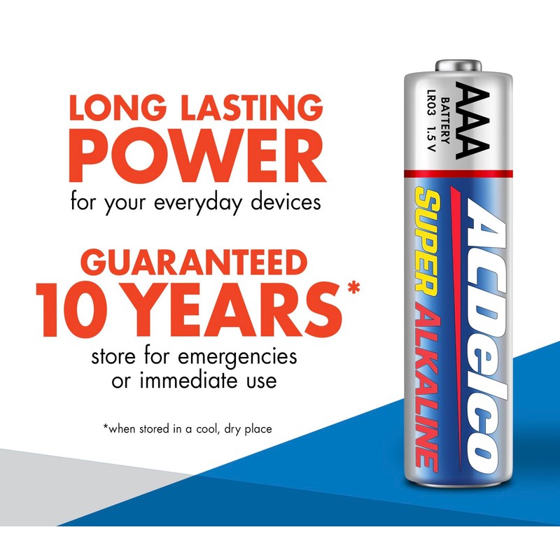 - LONG LASTING POWER: ACDelco super alkaline batteries deliver long lasting maximum power that is consistent and reliable for high-drain devices