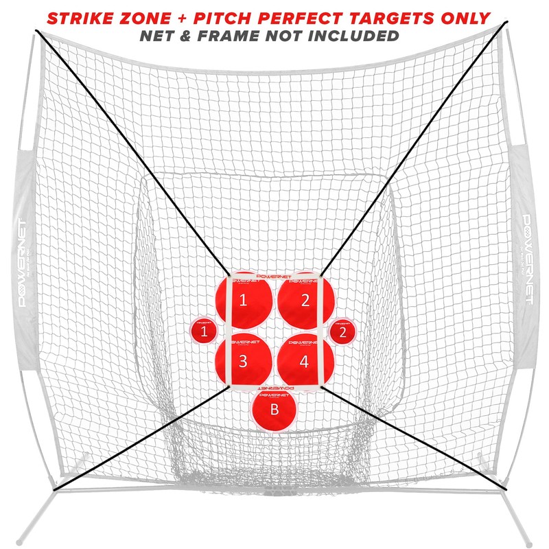 PowerNet German Marquez Pitch Perfect Targets and Strike Zone Attachment for 7x7 Net Bundle | Baseball Softball Pitching Trainer | 3 Size Target Set | Increase Accuracy Location | Training Aid