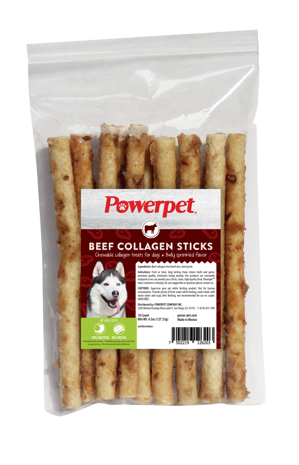 Powerpet Beef Collagen Sticks Dog Chew - Bully Sprinkled-Pack of 10-100% Natural