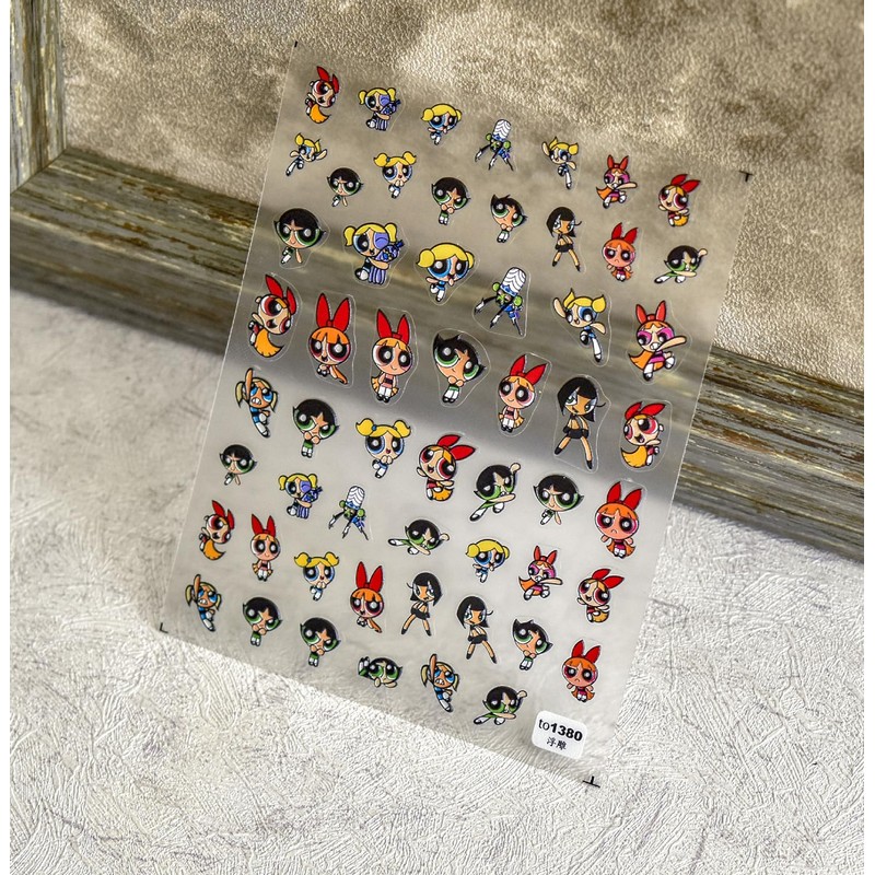 Powerpuff Girls Nail Stickers 3D Embossed Nail Set of 2 Blossom Bubbles Buttercup Cute Anime Toy Nail Stickers Nail Parts Nail Set Nail Art Nail Sticker Design Nail Decor for Adults Kids Hands Feet