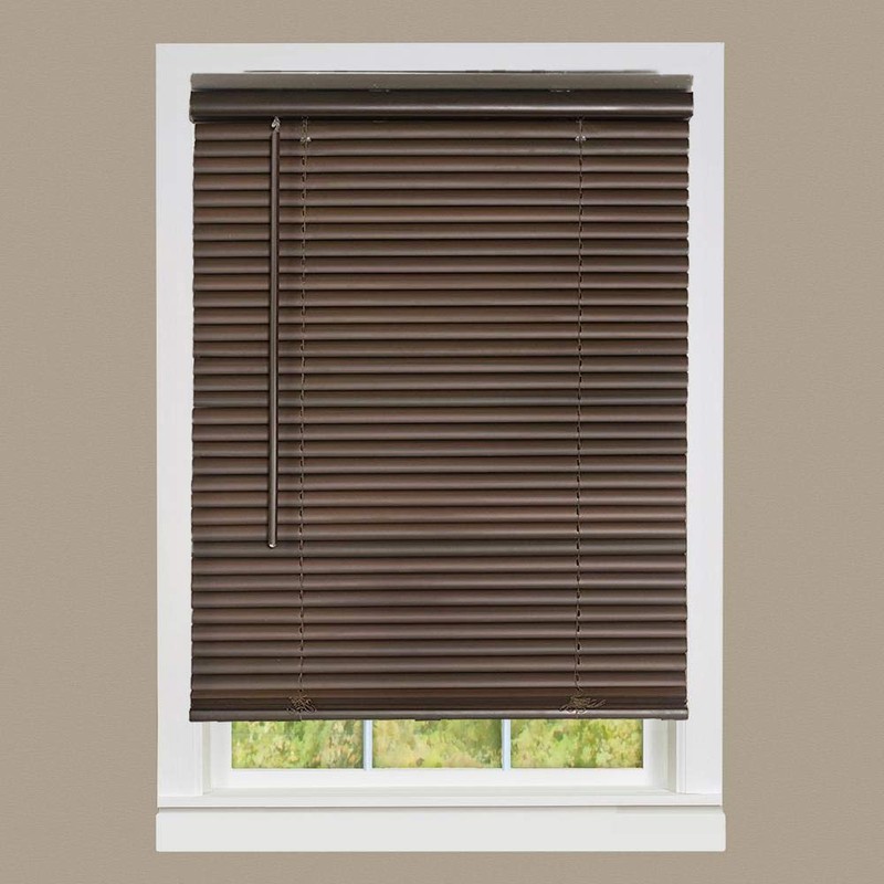 PowerSellerUSA 1" Vinyl Slats Room Darkening Cordless Window Blinds, 64L x 29W Inches Manual Operation Mode Blackout Privacy Blind, Solid Pattern Ceiling-Outside Mount Pull-Up Mini Blinds, Mahogany