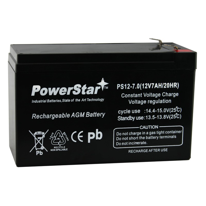 • PowerStar 12 Volt 7Ah AGM Sealed Lead Acid Battery with F2 Terminals (F1 Terminal adaptors included), Maintenance Free