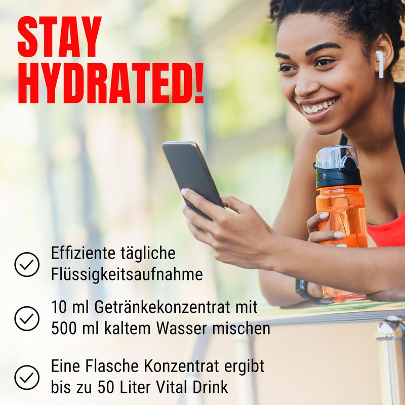 - ✔ KALORIENFREI & LOW CARB: Mit weniger als 0,1g Zucker pro Portion ist der Vital-Drink ideal geeignet, um deinen Flüssigkeitsbedarf zu decken. Im Gegensatz zu herkömmlichen Sport-Drinks enthält eine Portion lediglich 0,39 kcal, sodass du dich erfrischen kannst, ohne dir Gedanken um zusätzliche Kalorien machen zu müssen
