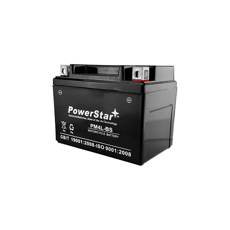 - Battery Type: YTX4L-BS AGM battery with [- +] terminal is a rechargeable, power sport battery. 3.35x 4.45x 2.76