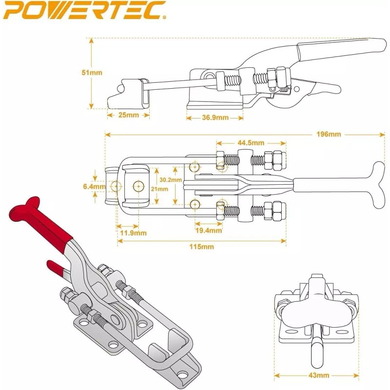 POWERTEC 20341 Heavy Duty Adjustable Latch-Action U Bolt Self-lock Toggle Clamp