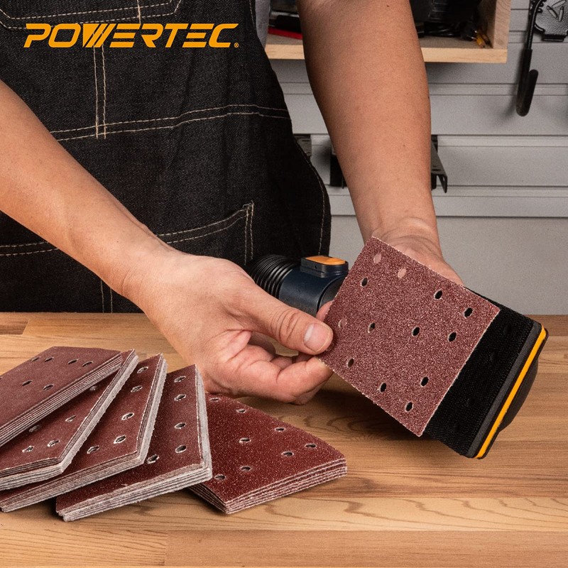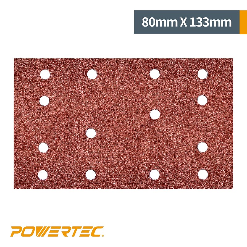 POWERTEC 4R13500, 50 Pack, 80mm x 133mm, A/O Hook and Loop Sander Pad | 40, 80, 120, 180, 240, Assorted Grits, Replacement for Festool RTS 400, Red
