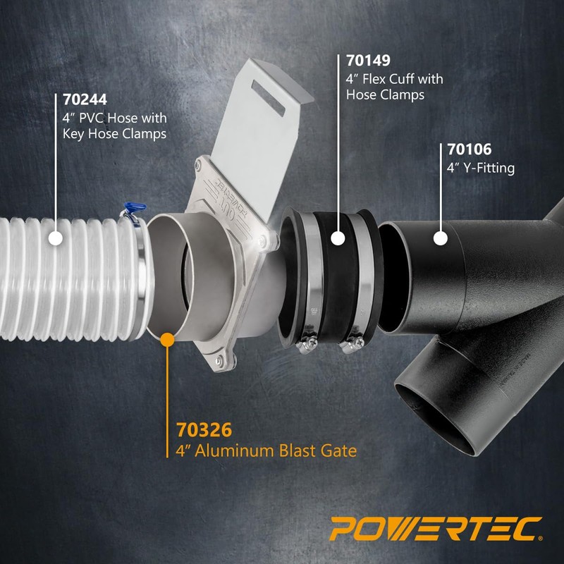 - COMPATIBILITY: Will fit 4" ID diameter hose or ducts. When used with flexible dust collection hose, hose clamps are required.