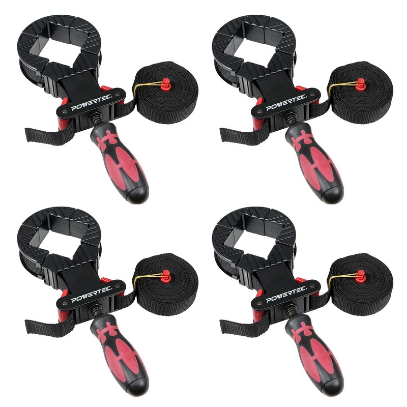 POWERTEC 4PK Strap Clamps for Woodworking – Quick Release Band Clamps with Ergonomic Handle, Adjustable Picture Frame Clamp, 13 ft Strap Belt Clamps for Cabinets and Drawers (71101-P4)