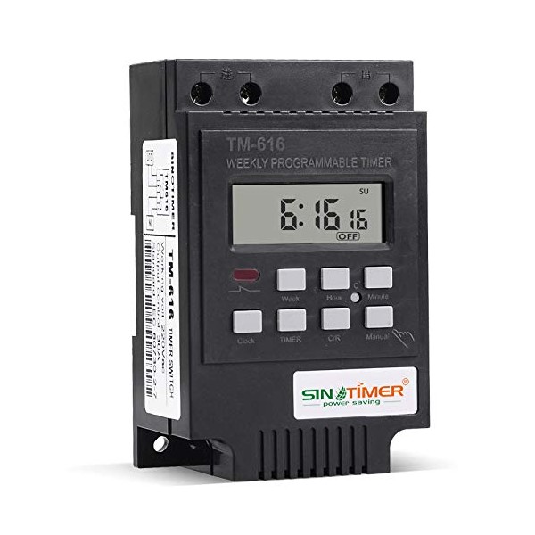 POWERTOOL Programmable Digital Timer, TM616 Digital Electrical Timer Plug Socket with LCD Display for Lights, 24 Hours / 7 Days A Week Programmable (Black,12V)