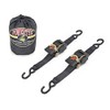 PowerTye 2in x 10ft Retractable Heavy-Duty Ratchet Tie-Downs, S-Hooks with Included Storage Bag - 800 lb Working Load Limit / 2,400 lb Breaking Strength - Black (Pair)