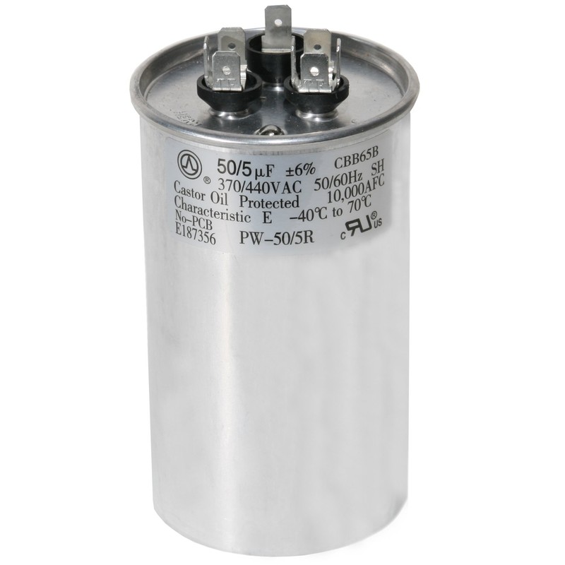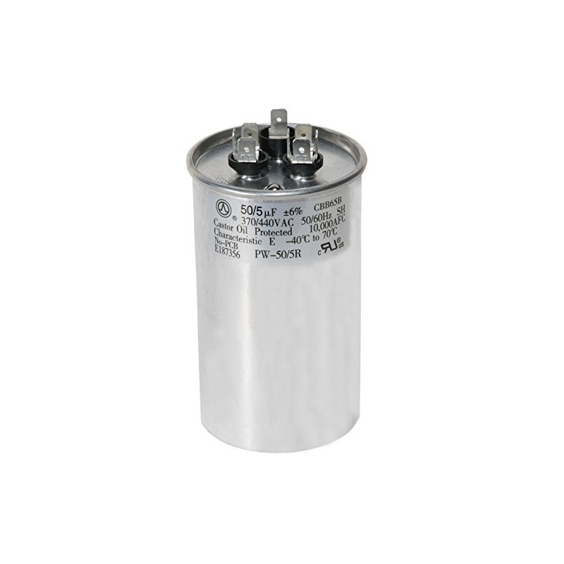 - 50/5 uf or 50/5 MFD micro farad 440 Volt Dual Run Round AC Capacitor . Replaces BOTH 370 & 440 VAC capacitors