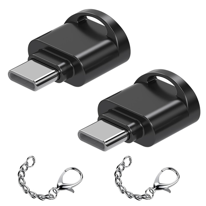 Packing list: 2 black TYPC TF card readers, 2 hanging chains