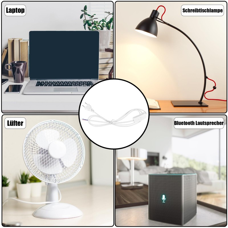 Powice Pack of 3 Cable with Plug, Connection Cable with Plug, 1.8 m Cable with Switch and Plug, Cable with Switch, Plug with Switch, Suitable for Lamps, Table Lamps, Floor Lamps (White)